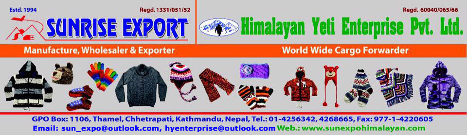 We manufacture every kind of woolen outfits like Woolen Jackets, Woolen Scrafs, Woolen Hats, Woolen Sweaters woolen pooncho, Earflaps and Woolen socks from best wool of mountain Yak & Goat. For exporting woolen products from Nepal in wholesale and retail prices, contact us. According to your designand color we do manufacture too.